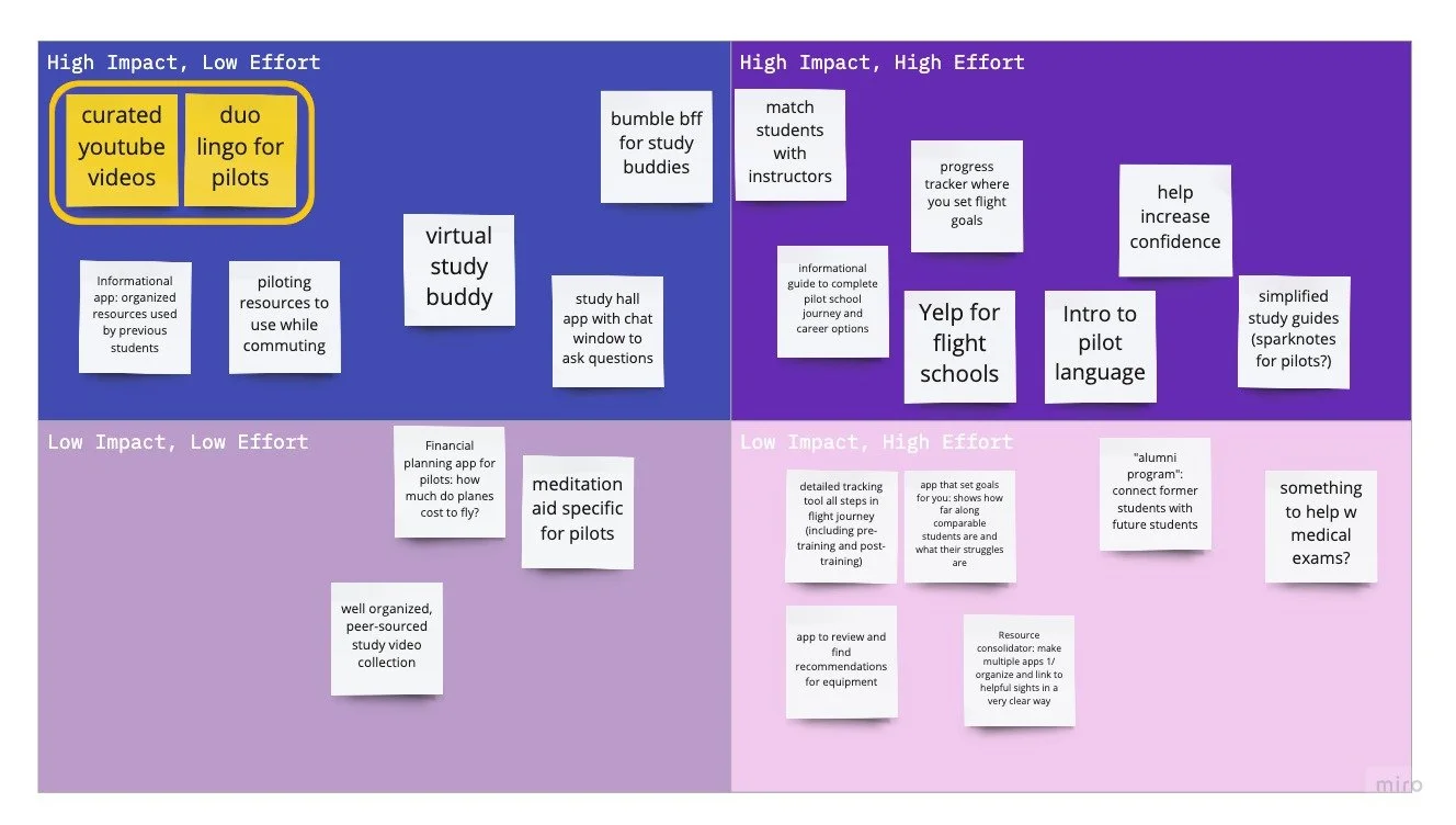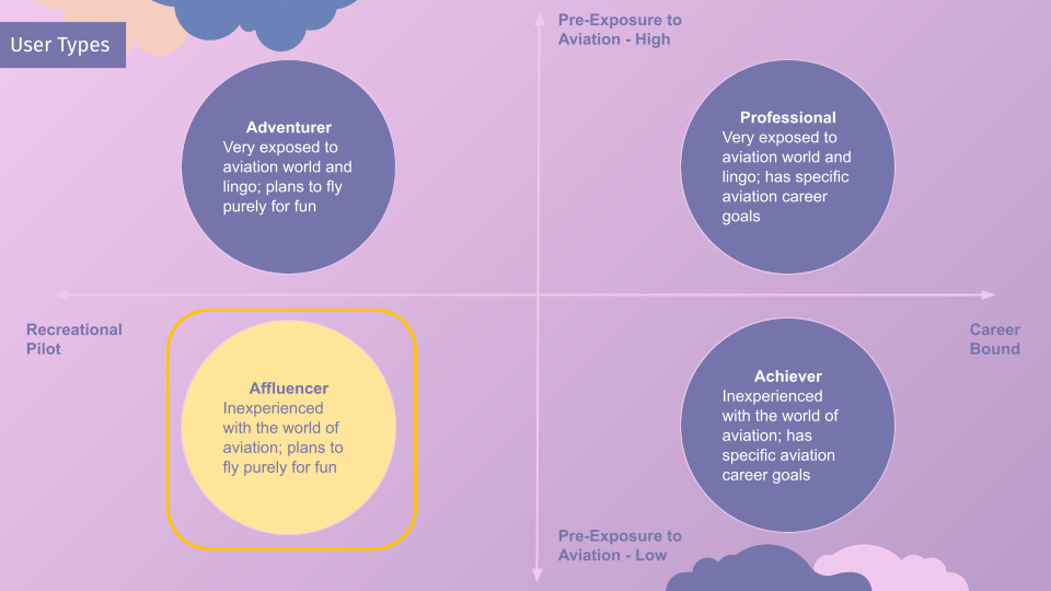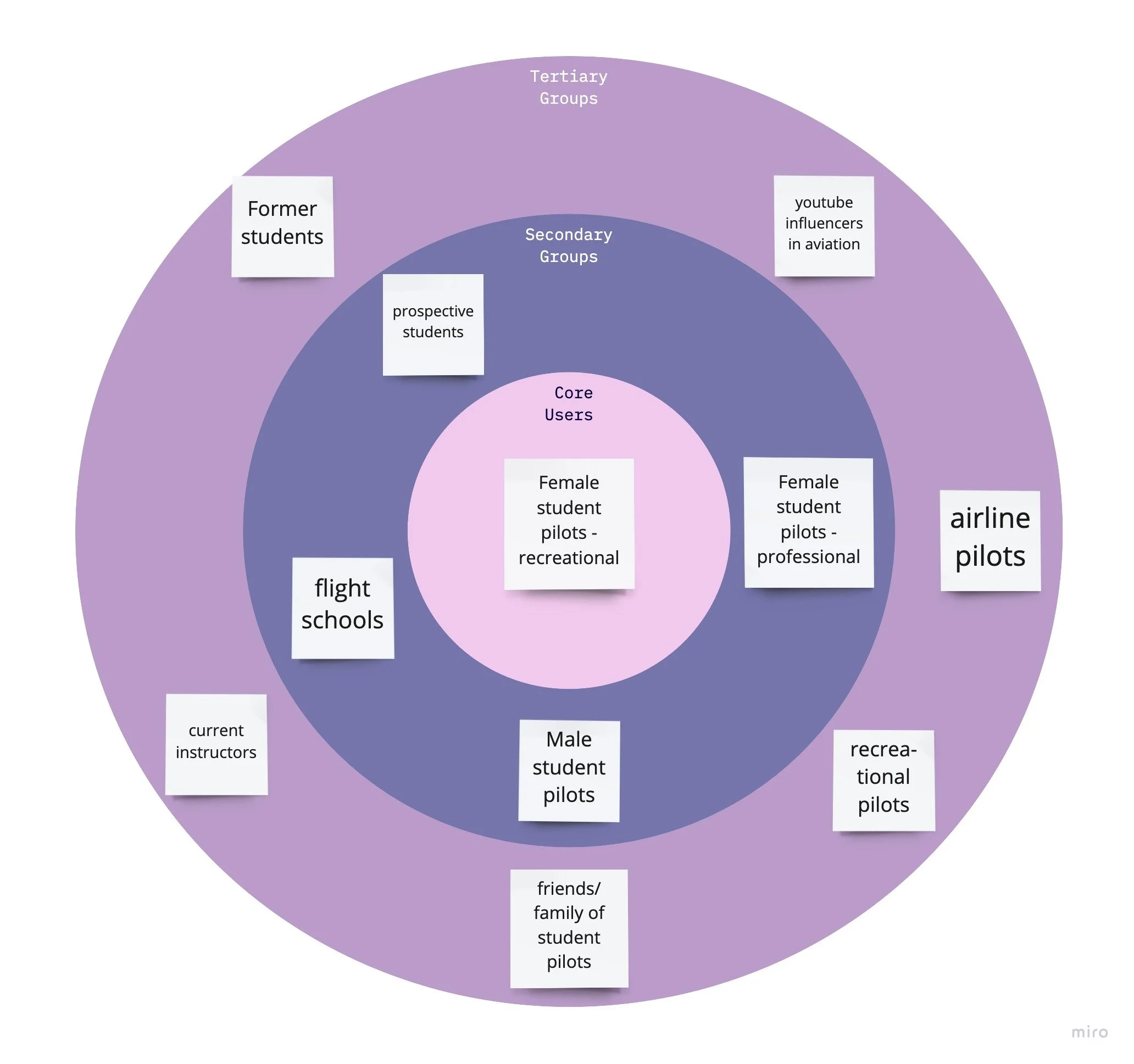 Here is a stakeholder map representing interviews with 15 core stakeholders, including student pilots, flight instructors, and prospective students.