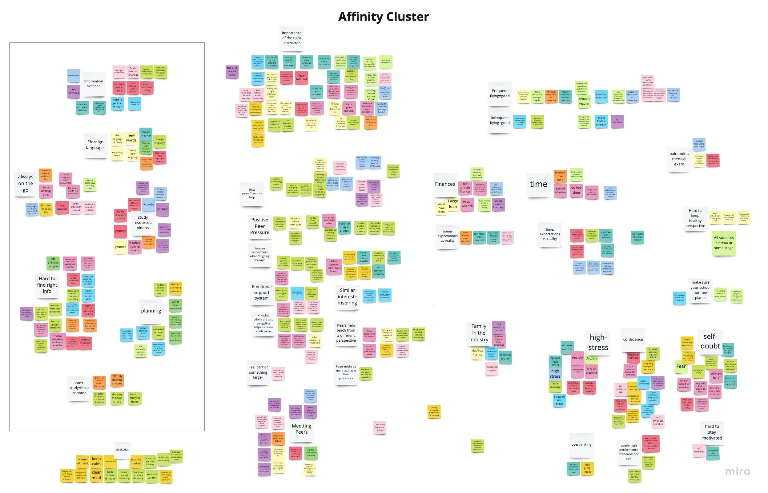 I created an affinity cluster to group common ideas from the 15 user interviews and identify themes.